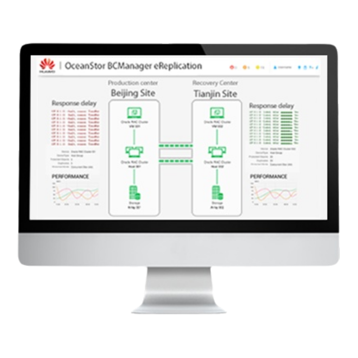 The BCManager eReplication module implements unified management of disaster recovery scenarios such as active-standby, two-site three-center, and active-active. It clearly and visually controls the operation of system disaster recovery services and quickly and conveniently completes data recovery and test drills. The BCManager eBackup module implements backup of virtual machine data, including FusionSphere and VMware vSphere virtualization platforms and cloud platform scenarios.