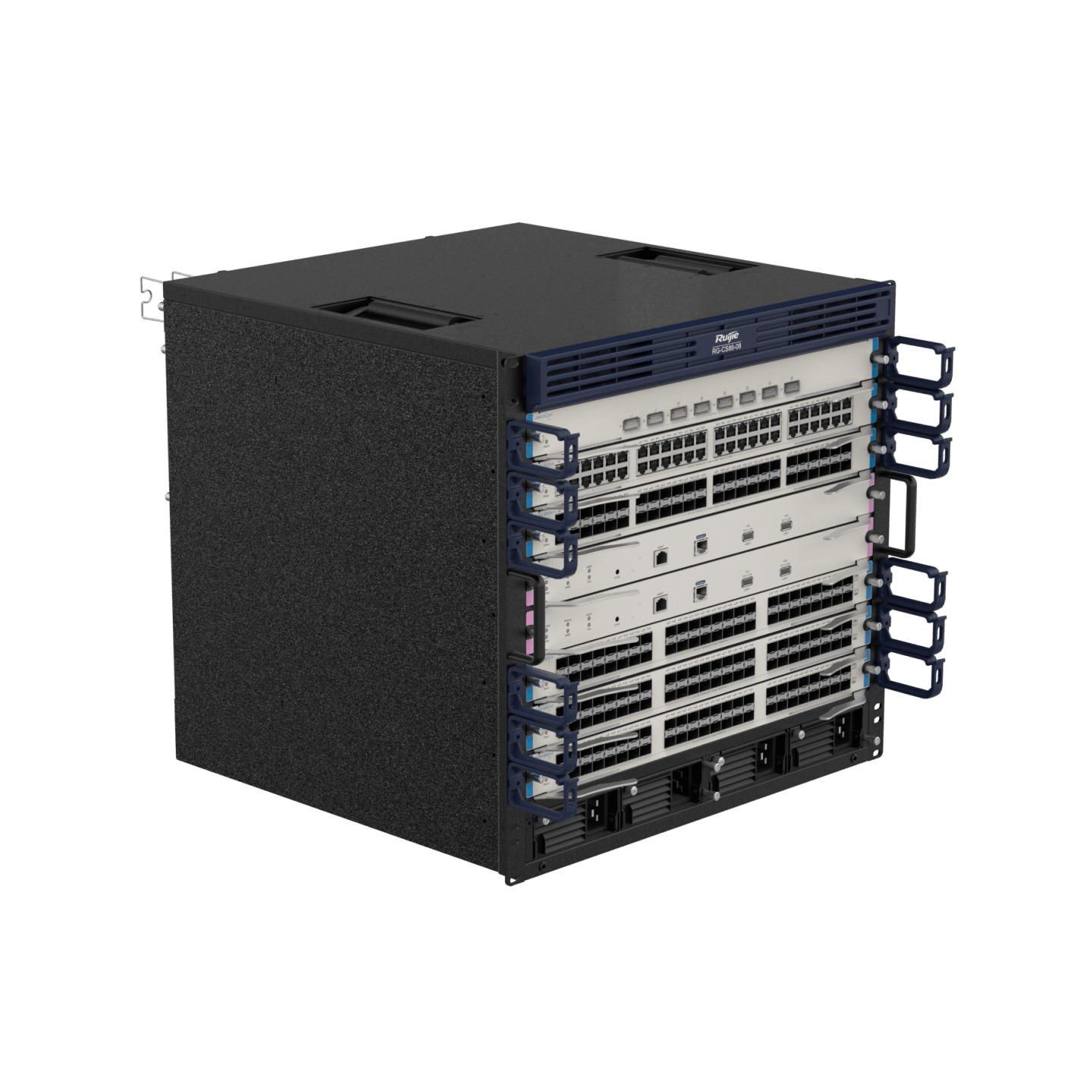 | RG-CS88-08 | RG-CS88-08 switch, which can accommodate 6 service cards and 2 supervisor engines, and with 2 fans (Purchase at least one RG-PA600I-F/RG-PA1600I-F module.) |