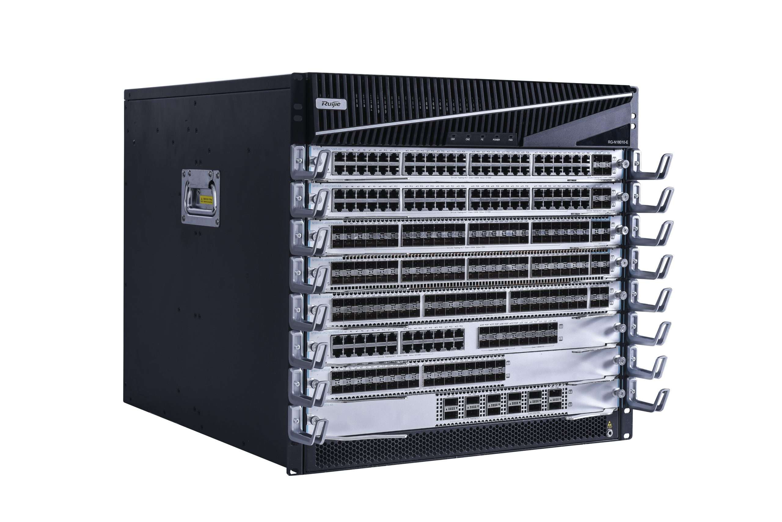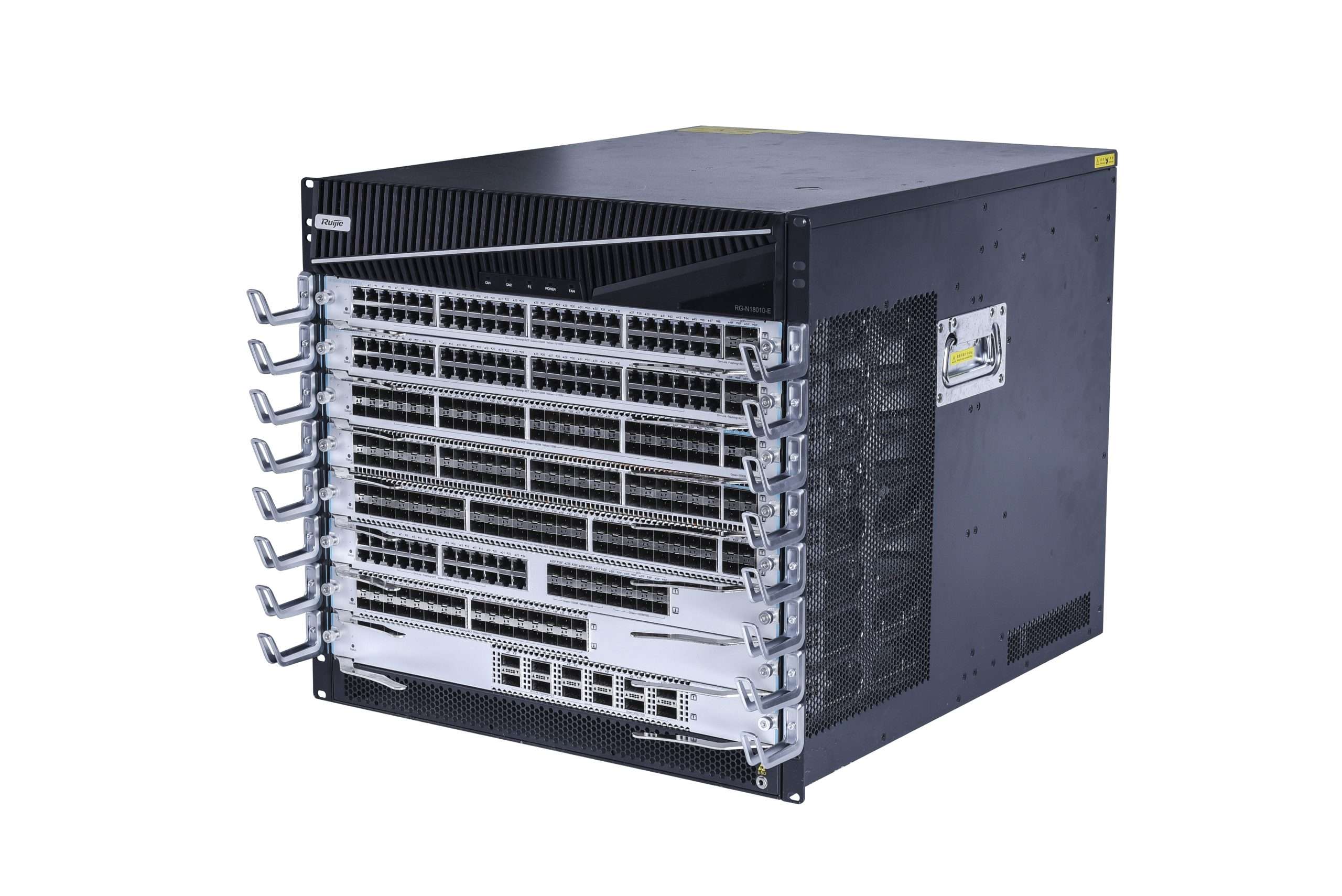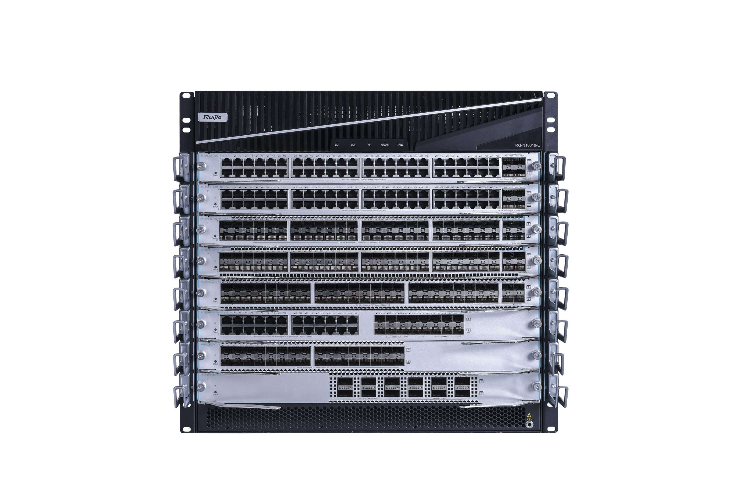 | RG-N18010-E | RG-N18010-E chassis, eight line cards, two supervisor modules, and four SFUs |