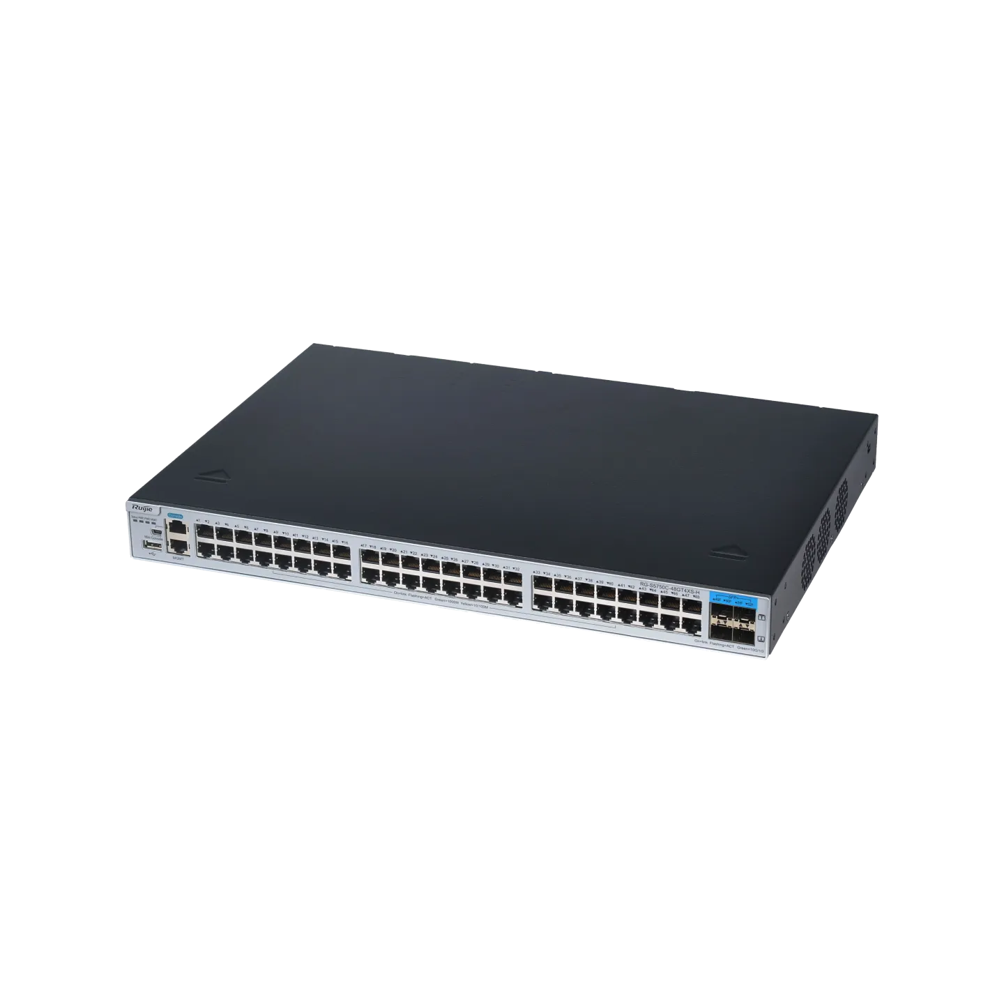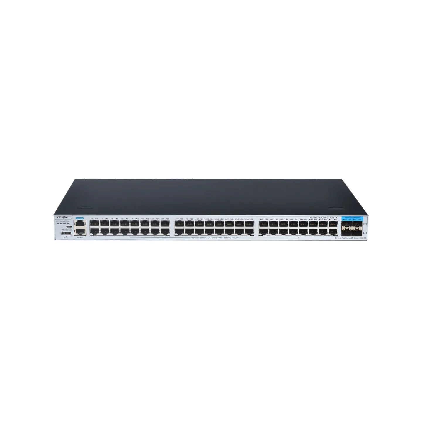 - Rich port types, 48 x 1000 Mbps Ethernet ports, 4 x 10GE optical ports for uplink