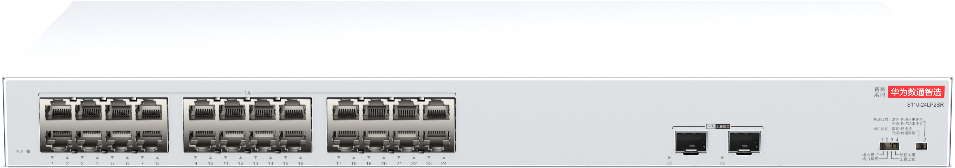 S110-24LP2SR (24*10/100/1000BASE-T ports, 2*GE SFP ports, PoE+, AC power)
